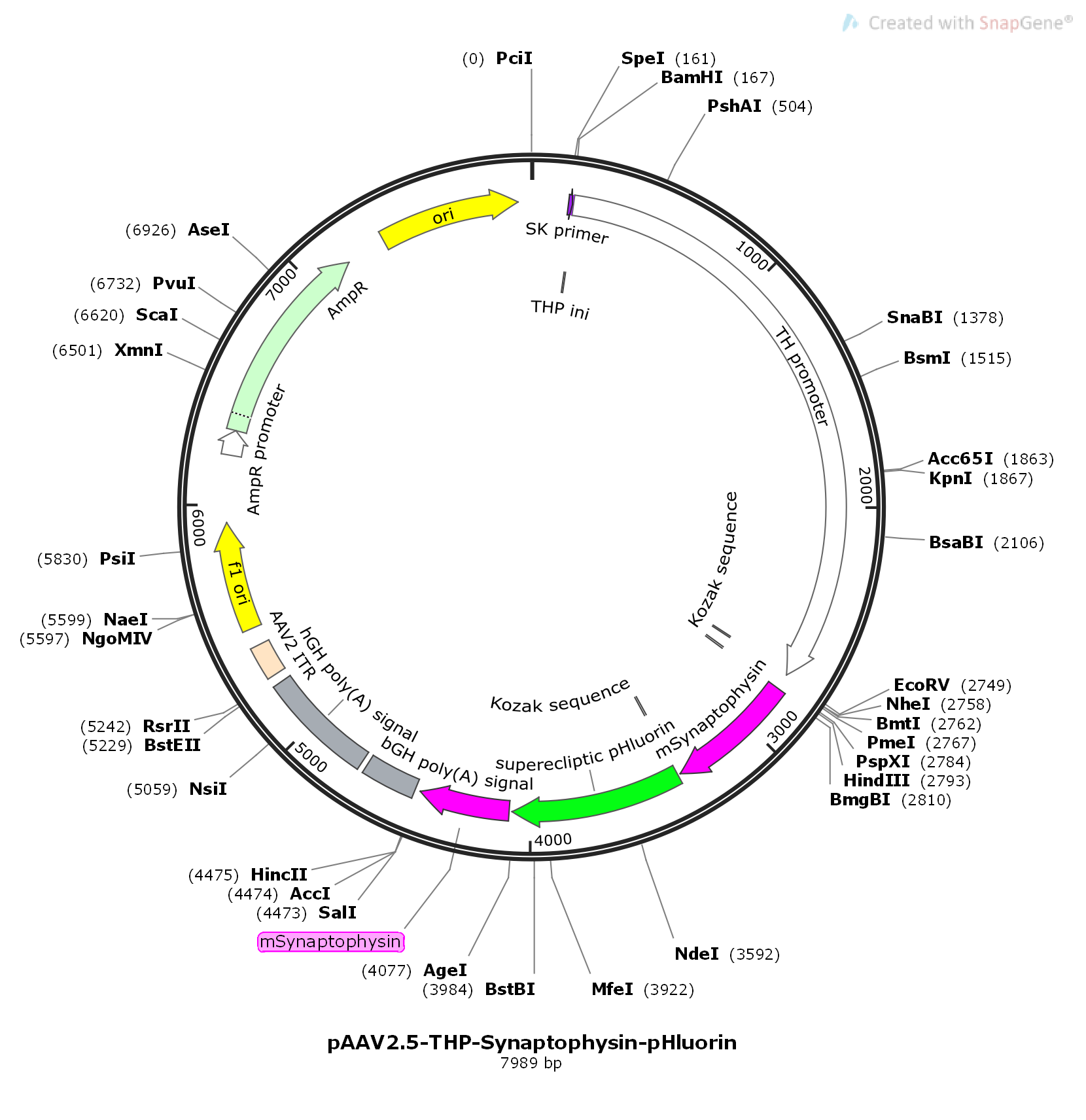 pAAV-THP-Synaptophysin-pHluorin