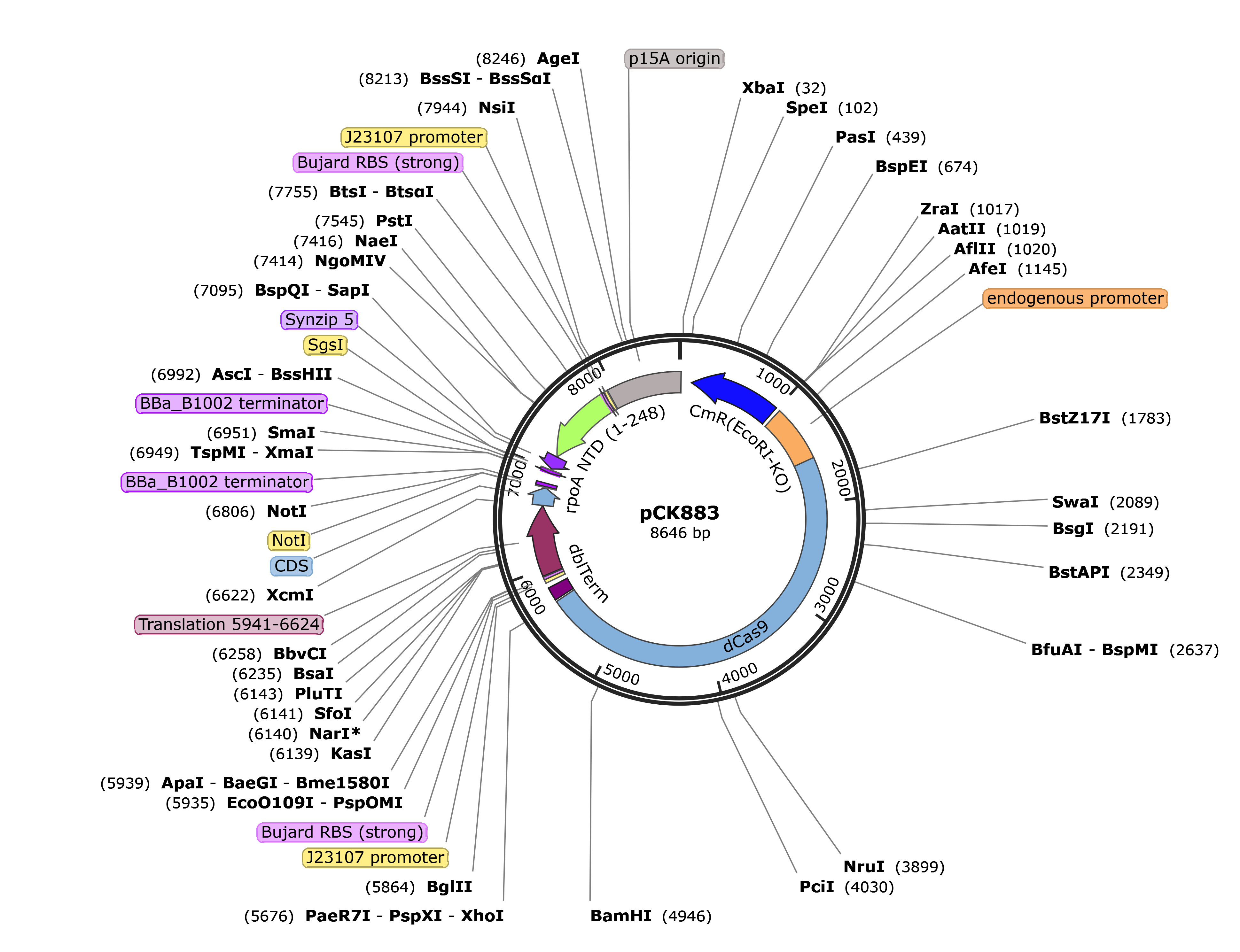 PurposeConstitutive expression of dCas9, MCP-SoxS-SYNZIP6, and αNTD-SYNZIP5
