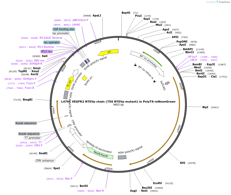 L4791 VEGFR2 NTEVp chain (75S NTEVp mutant) in PolyTX-mNeonGreen