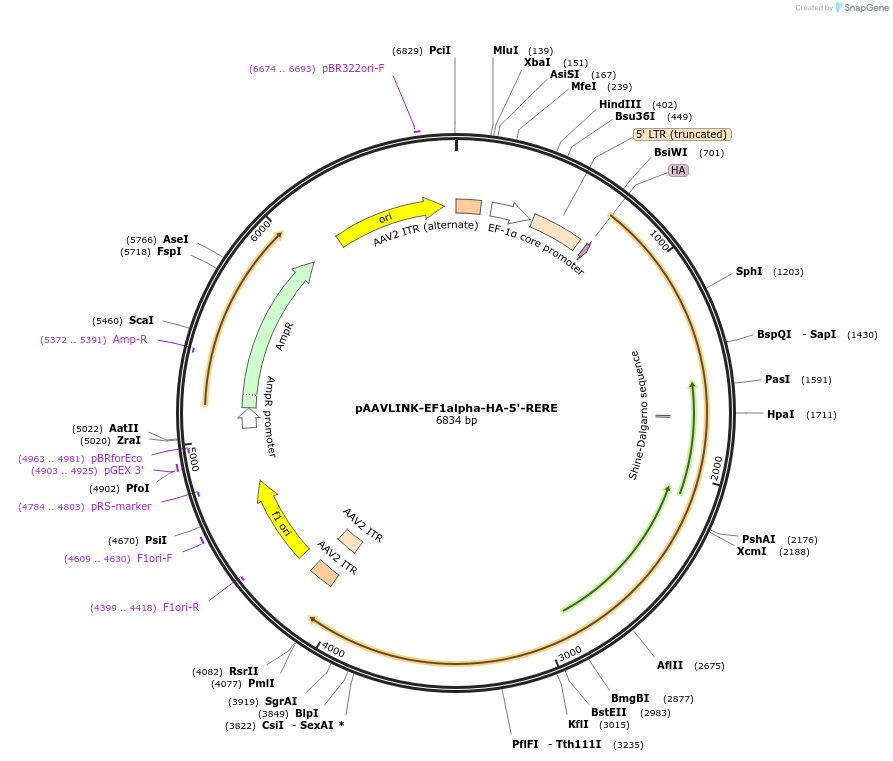 pAAVLINK-EF1alpha-HA-5'-RERE