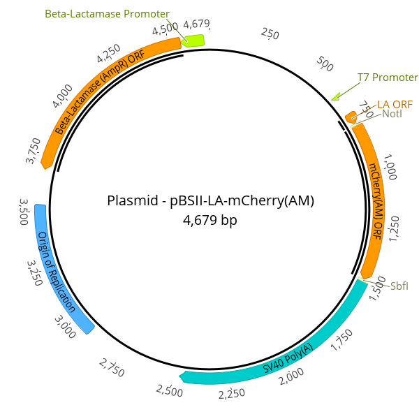 pBSII-LA-mCherry(AM) was a gift from Frederic Strobl (Addgene plasmid # 244815 ; http://n2t.net/addgene:244815 ; RRID:Addgene_244815)