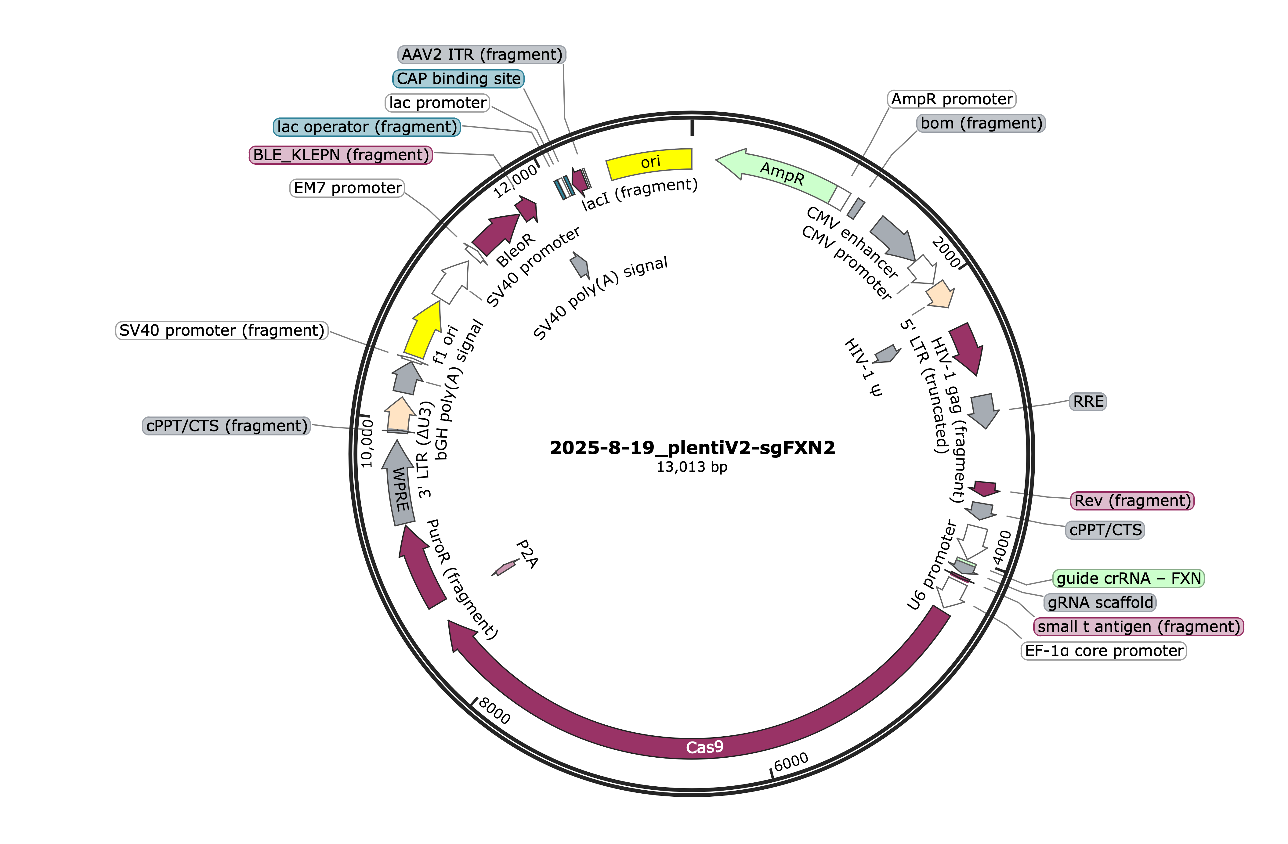 PurposeAll-in-one CRISPRko plasmid containing Cas9 and guide RNA targeting FXN
