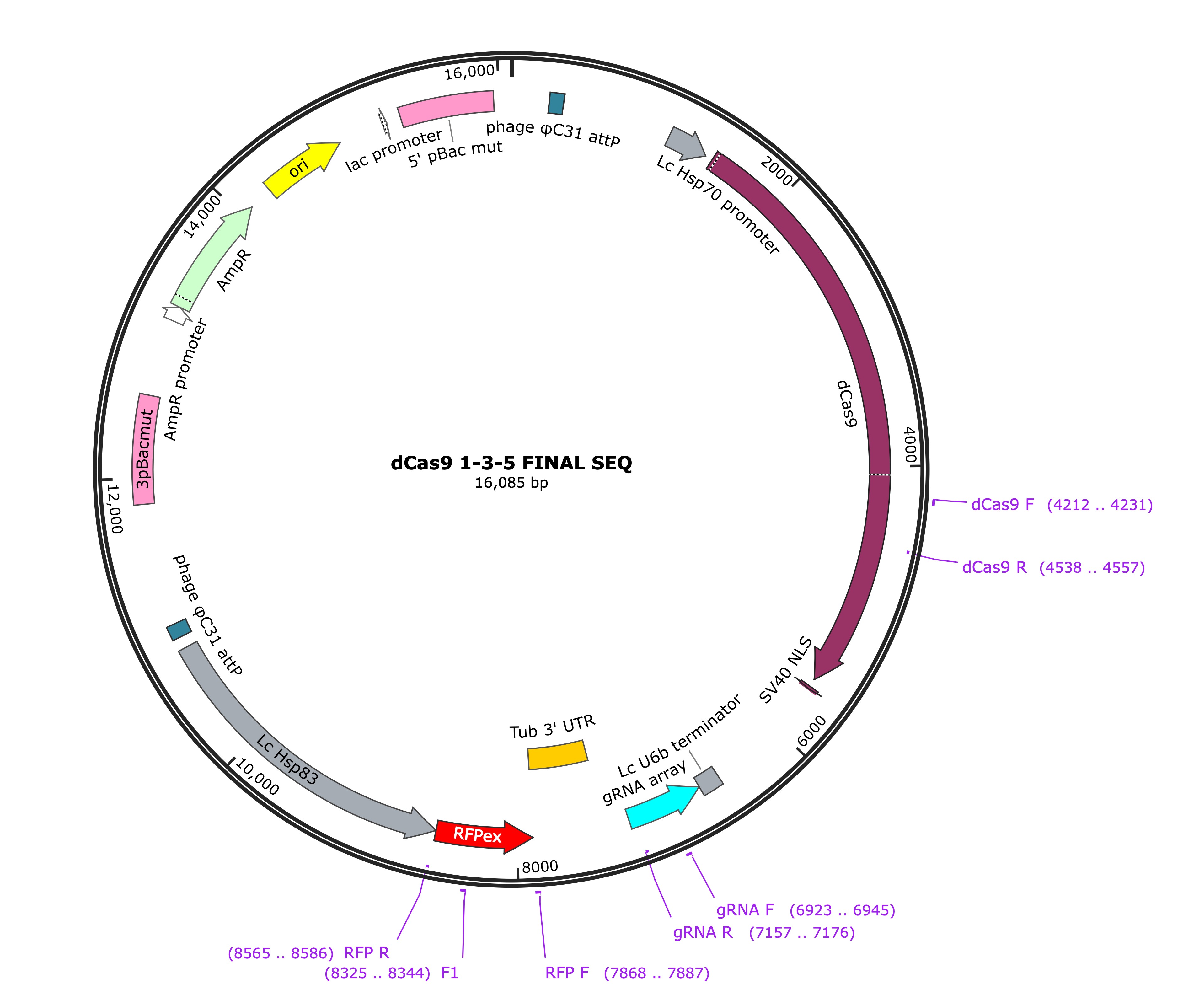 PurposeExpresses dCas9 under control of Hsp70 promoter and gRNAs targeting Lucilia cuprina transformer gene