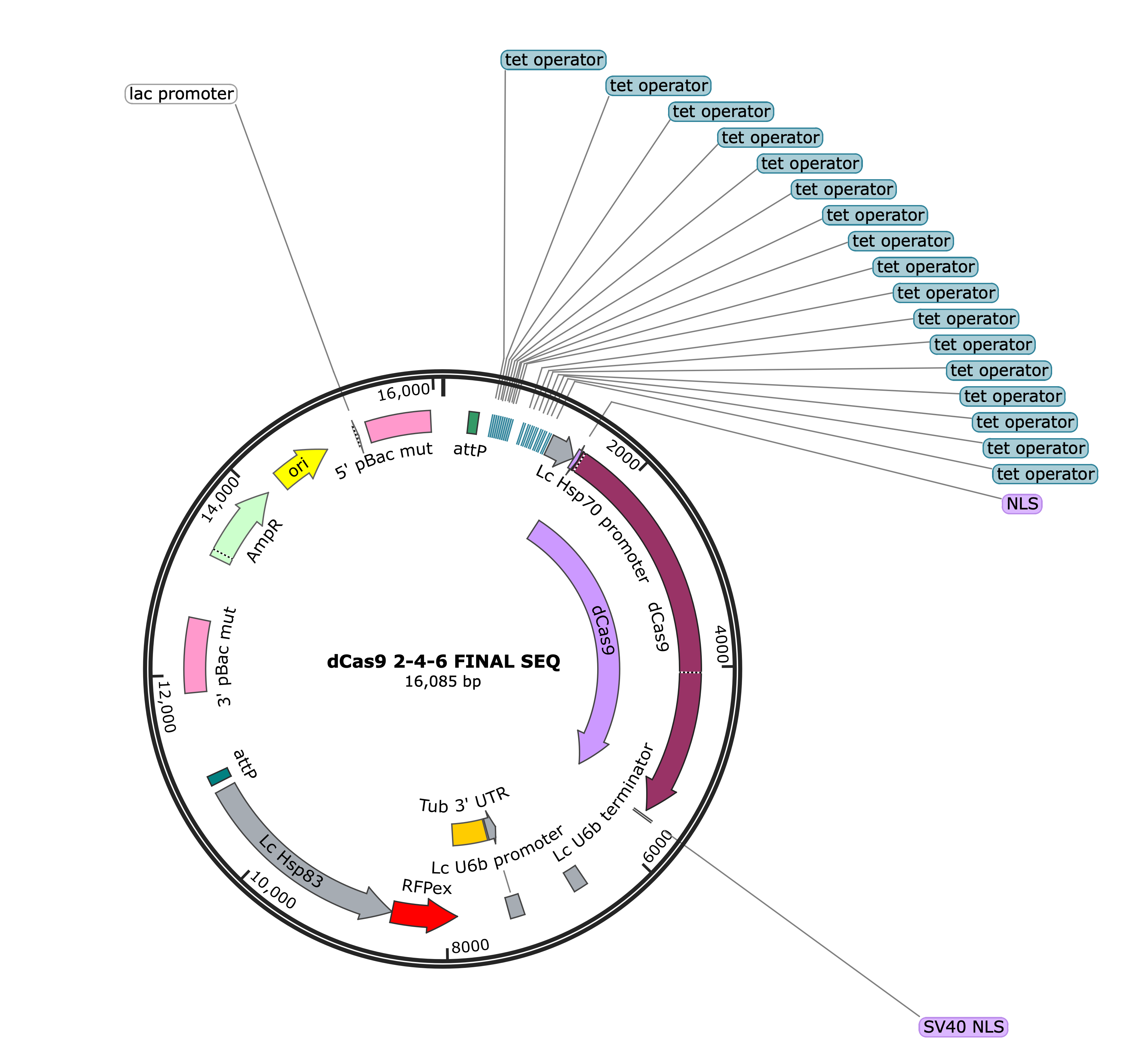 PurposeExpresses dCas9 under control of Hsp70 promoter and gRNAs targeting Lucilia cuprina transformer gene