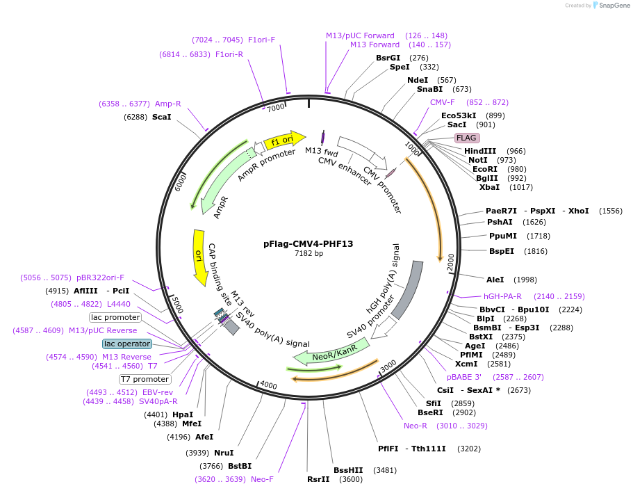 pFlag-CMV4-PHF13 was a gift from Sarah Kinkley (Addgene plasmid # 246094 ; http://n2t.net/addgene:246094 ; RRID:Addgene_246094) -
