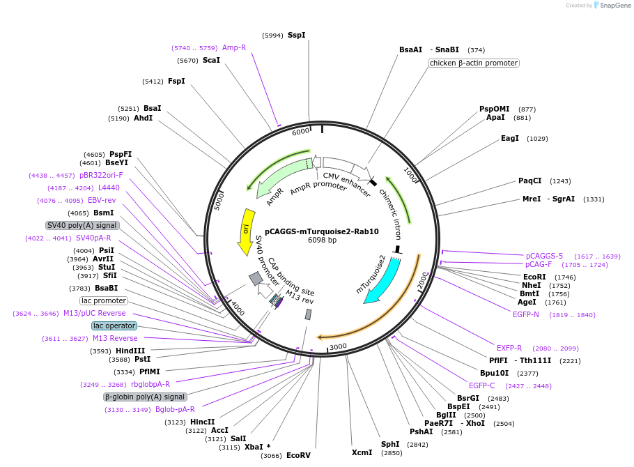 pCAGGS-mTurquoise2-Rab10 was a gift from Ryohei Yasuda (Addgene plasmid # 246279 ; http://n2t.net/addgene:246279 ; RRID:Addgene_246279) -