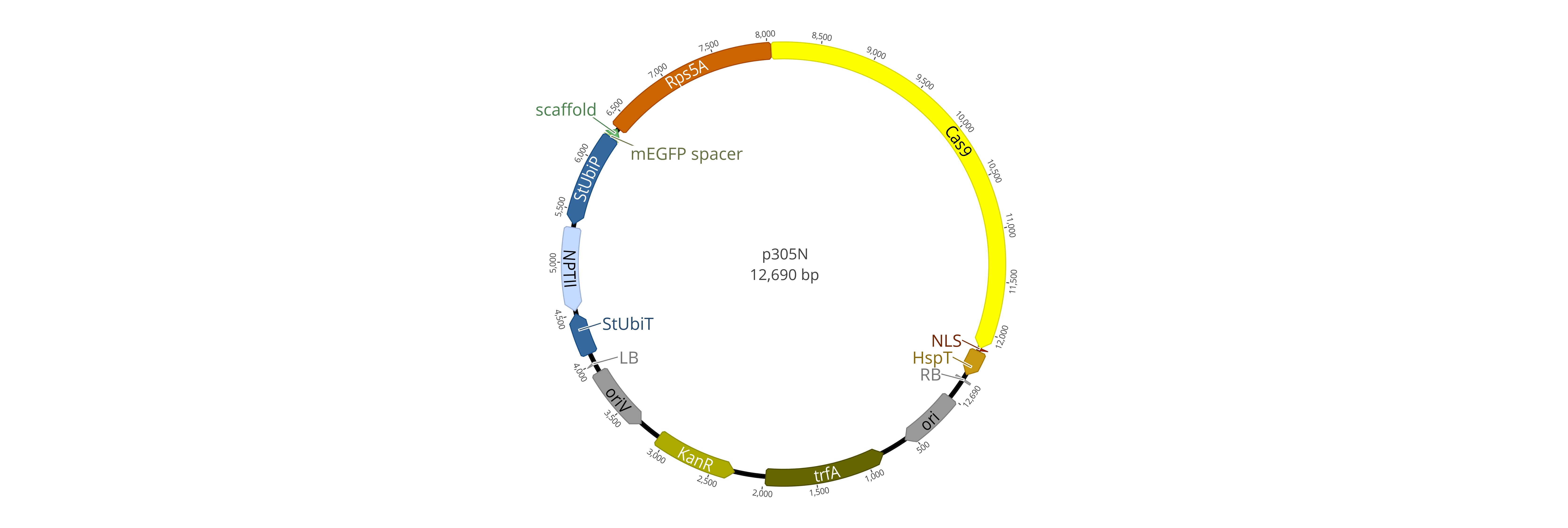 PurposeA promoterless construct designed for cloning various Pol III promoters or serving as a control in evaluating Pol III promoters for CRISPR-Cas9 editing of mEGFP in Nicotiana benthamiana and poplar reporter lines