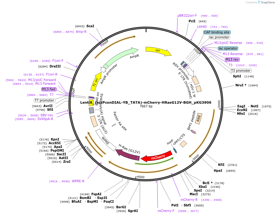 LentiX_(loxPconDIAL-YB_TATA)-mCherry-HRasG12V-BGH_pKG3906