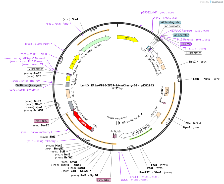 PurposeZFa Lentivirus expressing VP16-ZF37-2A-mCherry from the EF1a promoter