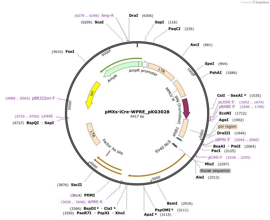 pMXs-iCre-WPRE_pKG3028 was a gift from Kate Galloway (Addgene plasmid # 246354 ; http://n2t.net/addgene:246354 ; RRID:Addgene_246354) -