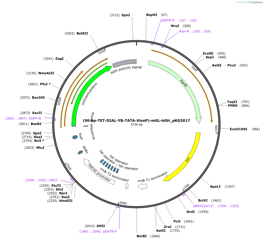 (90-bp-TET-DIAL-YB-TATA-VloxP)-mGL-bGH_pKG3017