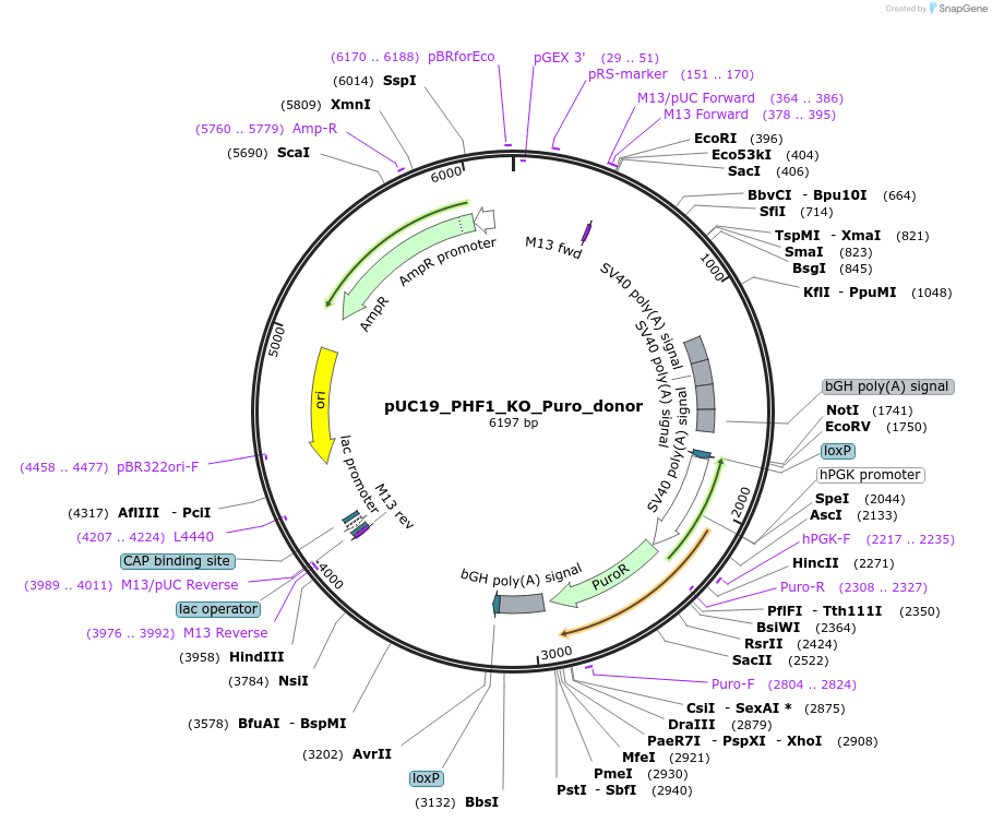 PurposePHF1 KO donor plasmid with puromycin resistance