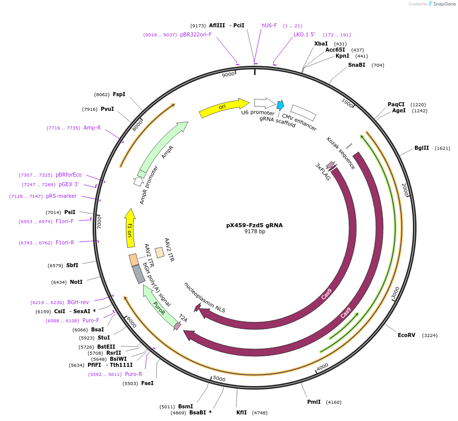 PurposeCRISPR vector co-expressing Cas9 and a mouse Fzd5 gRNA
