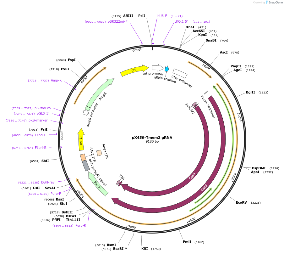 PurposeCRISPR vector co-expressing Cas9 and a mouse Tmem2 gRNA