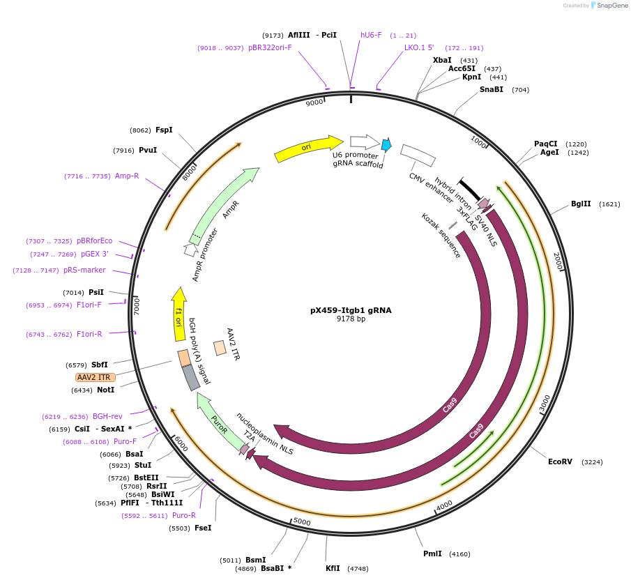 PurposeCRISPR vector co-expressing Cas9 and a mouse Itgb1 gRNA