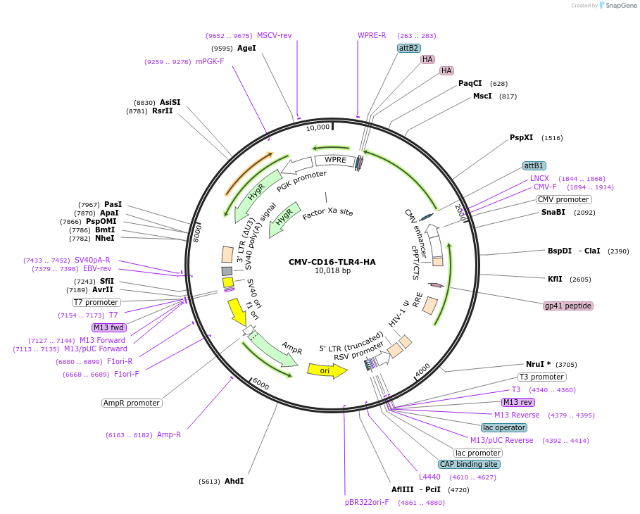 A portion of this plasmid was derived from a plasmid made byFCGRB3 from Addgene #82896, TLR4 from Addgene #42646