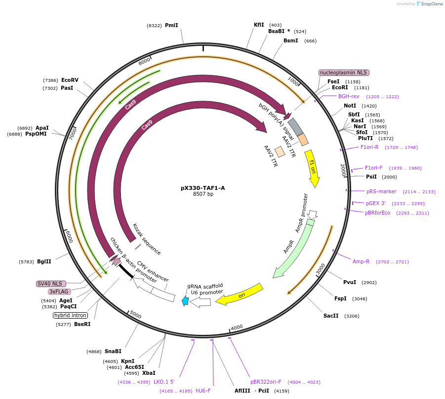 PurposeExpresses SpCas9 and a sgRNA targeting the human TAF1-A loci for knock-in.