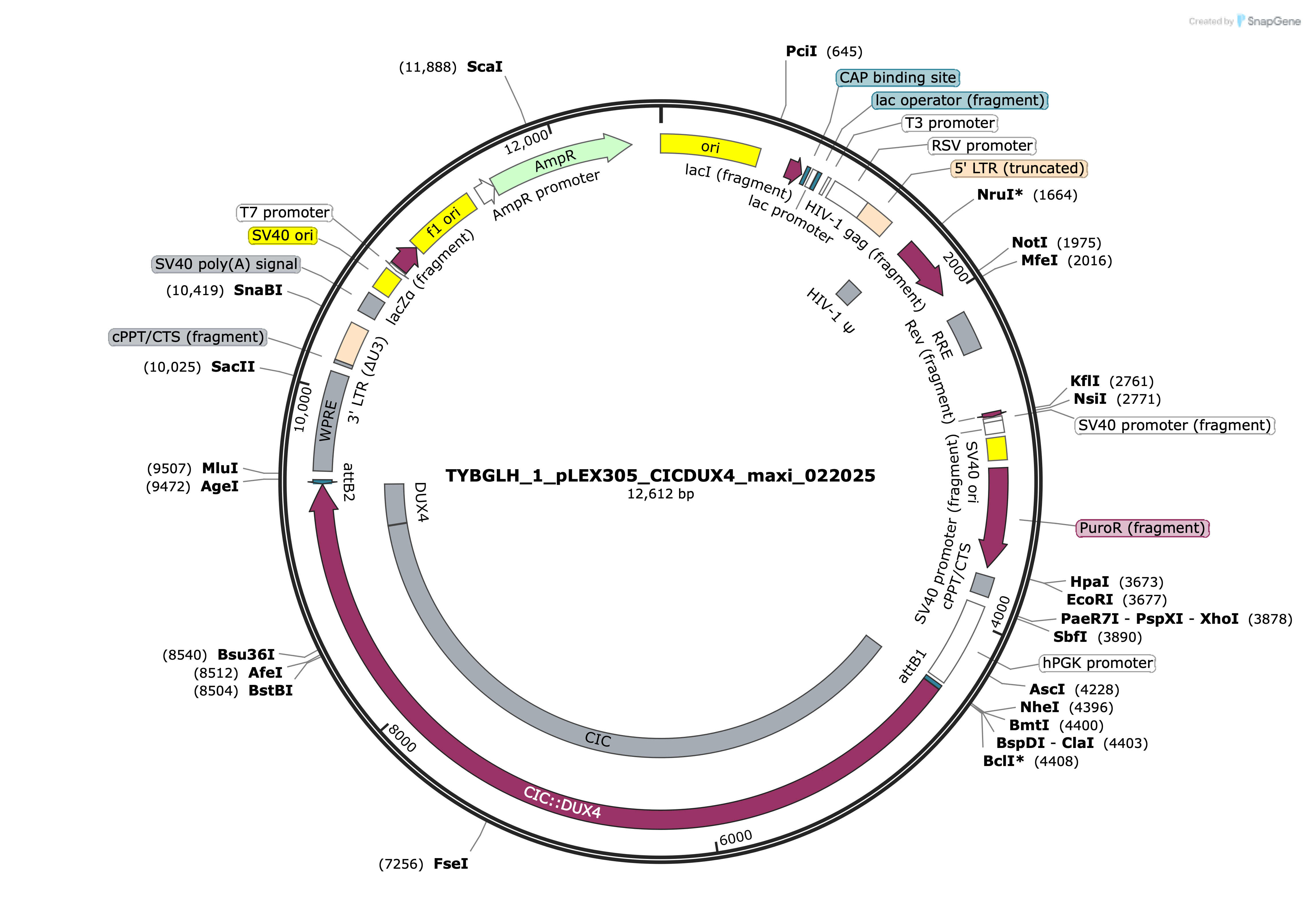 A portion of this plasmid was derived from a plasmid made byThe CIC::DUX4 coding sequence is derived from an HA-CIC::DUX4 expression construct from Takuro Nakamura.