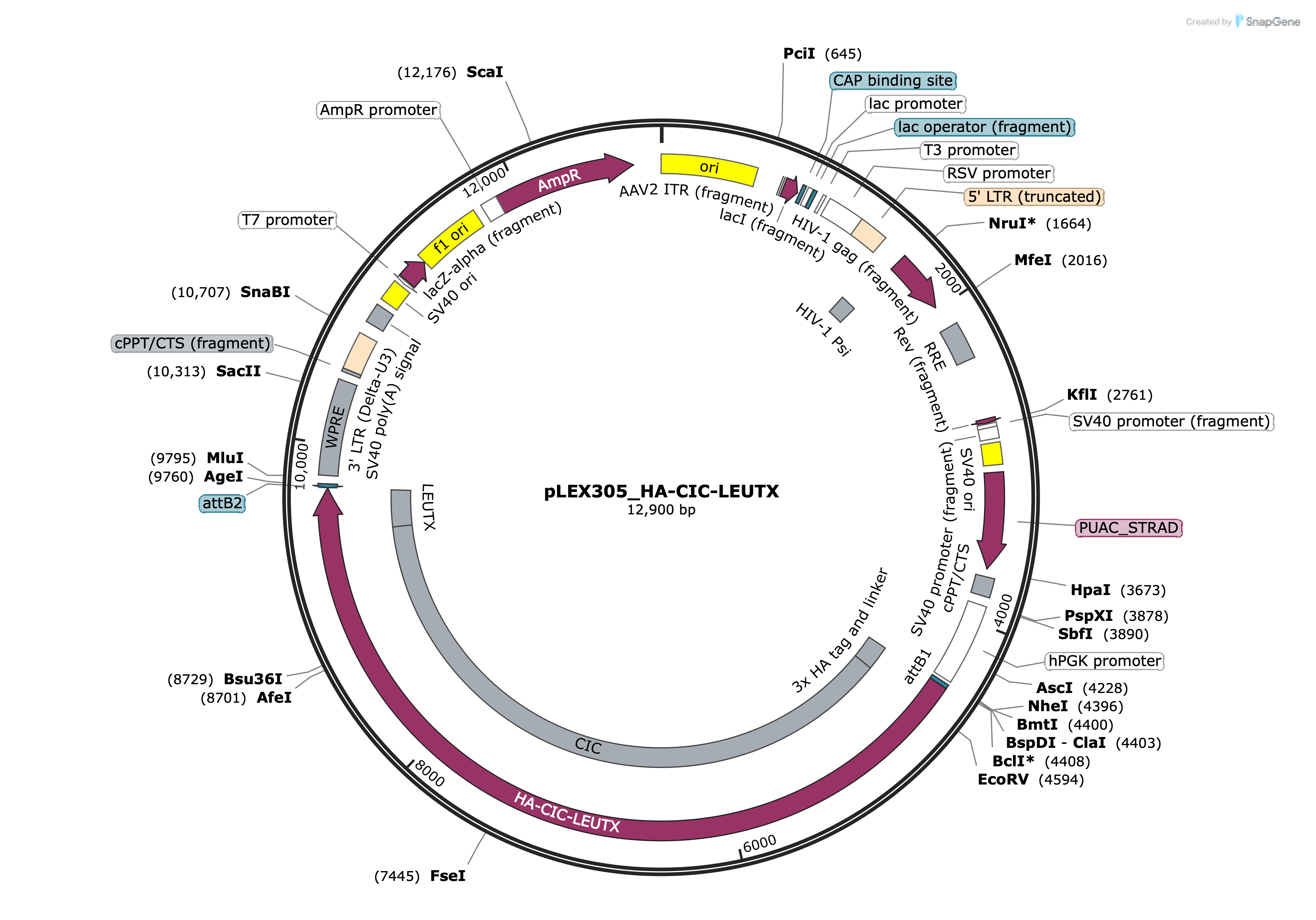 PurposeLentiviral constitutive expression construct for HA-tagged CIC::LEUTX (pLEX_305 backbone)