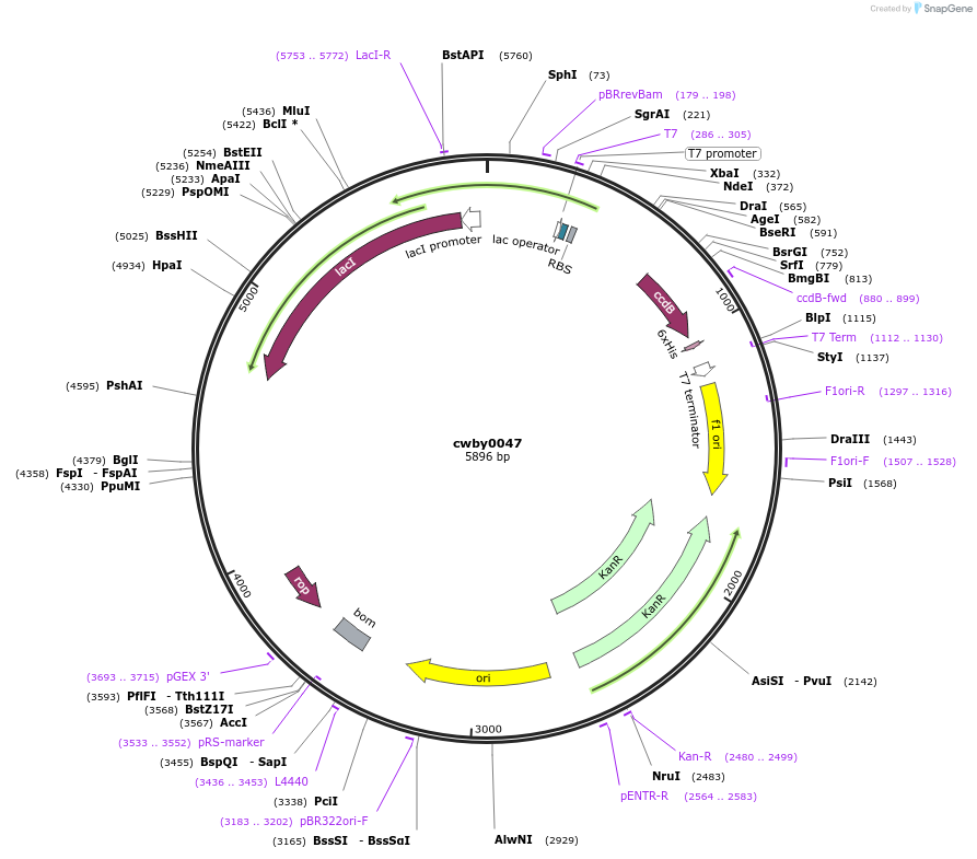 | Plasmid | 247397 | Standard format: Plasmid sent in bacteria as agar stab | 1 | $89 | |