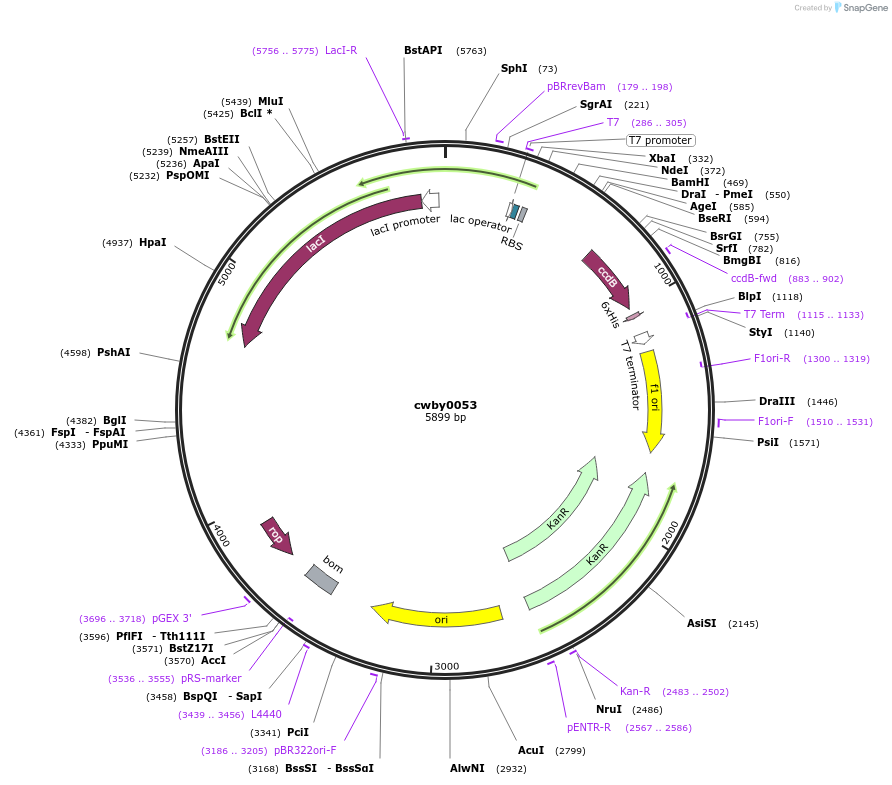 | Plasmid | 247403 | Standard format: Plasmid sent in bacteria as agar stab | 1 | $89 | |