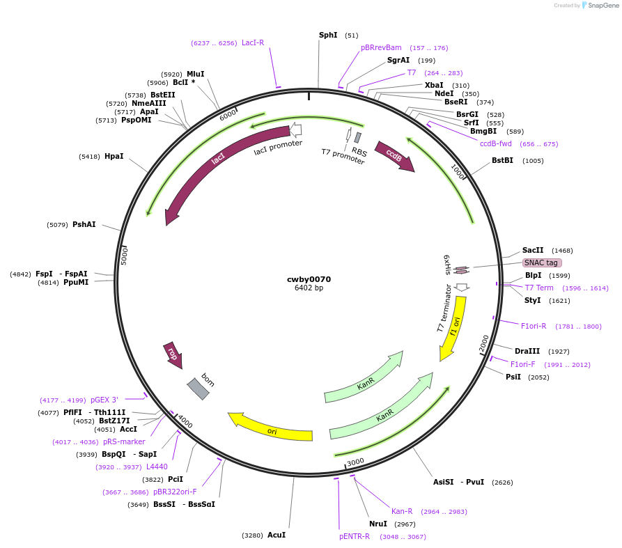 PurposeGGA cloning AGGA-promoter-ccdb-TTCC-GS-C4-81-4-SNAC-6xhis