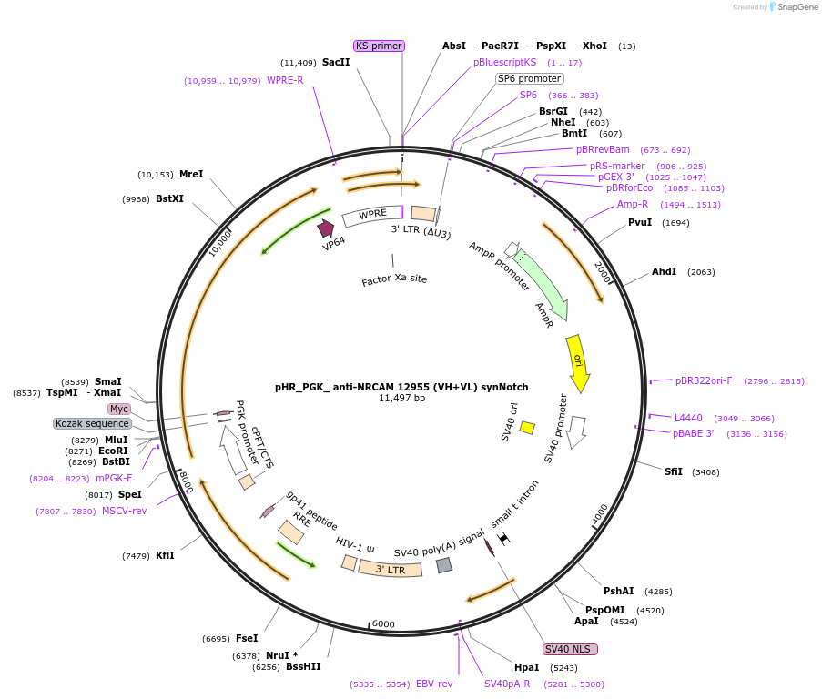 A portion of this plasmid was derived from a plasmid made byWendell Lim (pHR backbone and PGK promoter, Addgene #79120); University of Toronto (anti-NRCAM 12955 binder).