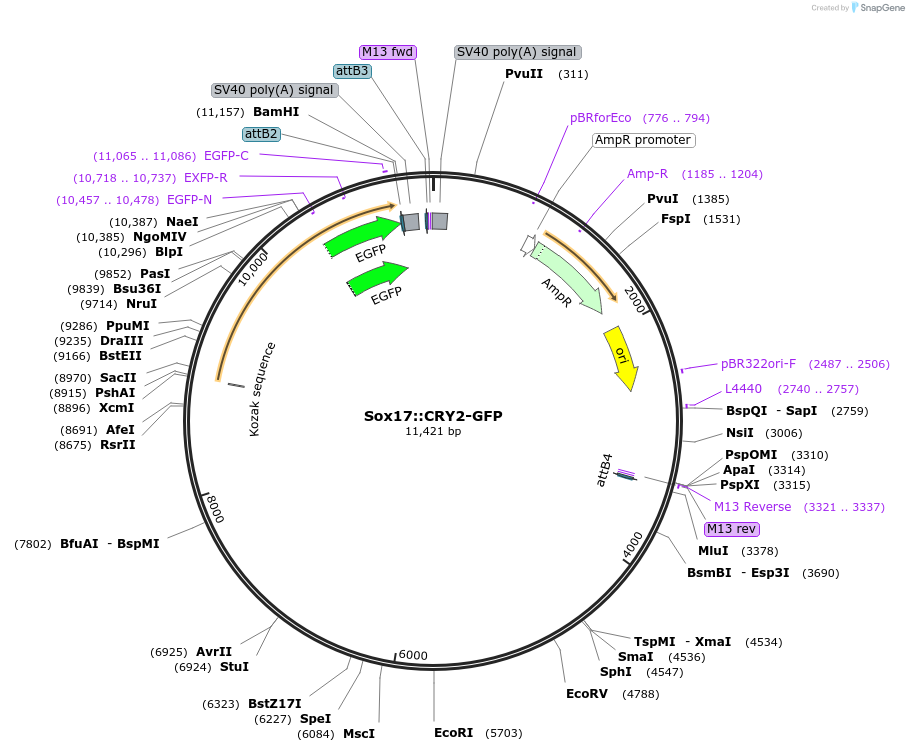 PurposeExpression of Sox17-driven CRY2–GFP fusion protein for optogenetic control