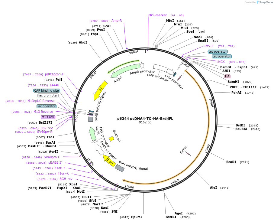 p6344 pcDNA4-TO-HA-Brd4FL was a gift from Peter Howley (Addgene plasmid # 31351 ; http://n2t.net/addgene:31351 ; RRID:Addgene_31351) -