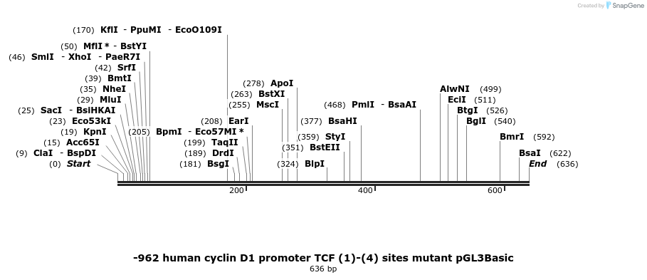 -962 human cyclin D1 promoter TCF (1)-(4) sites mutant pGL3Basic Sequences (2)