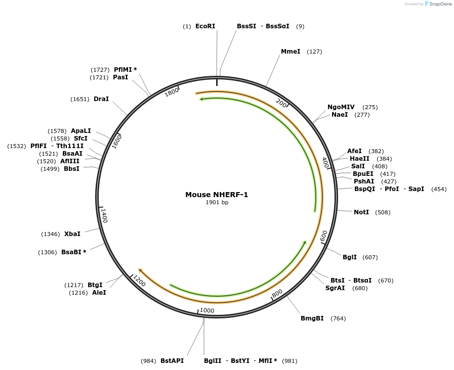Molecular cloning of the cDNA and promoter sequences for the mouse sodium-hydrogen exchanger regulatory factor. Weinman EJ, Steplock D, Zhang X, Akhter S, Shenolikar S. Biochim Biophys Acta. 1999 Oct 6;1447(1):71-6. 10.1016/S0167-4781(99)00100-1 PubMed 10500246