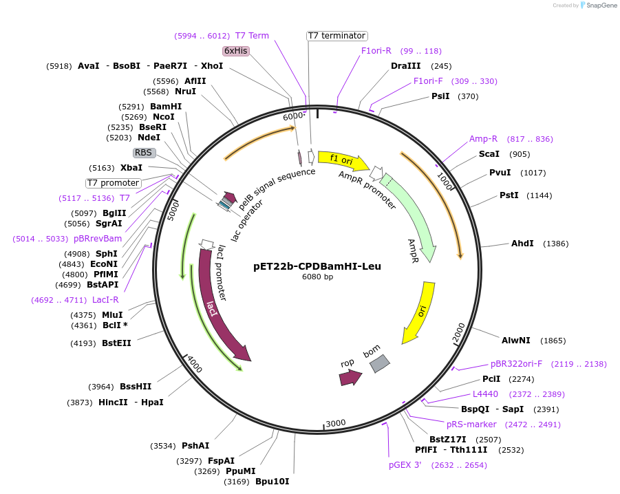 pET22b-CPDBamHI-Leu was a gift from Matthew Bogyo & Aimee Shen (Addgene plasmid # 38256 ; http://n2t.net/addgene:38256 ; RRID:Addgene_38256) -