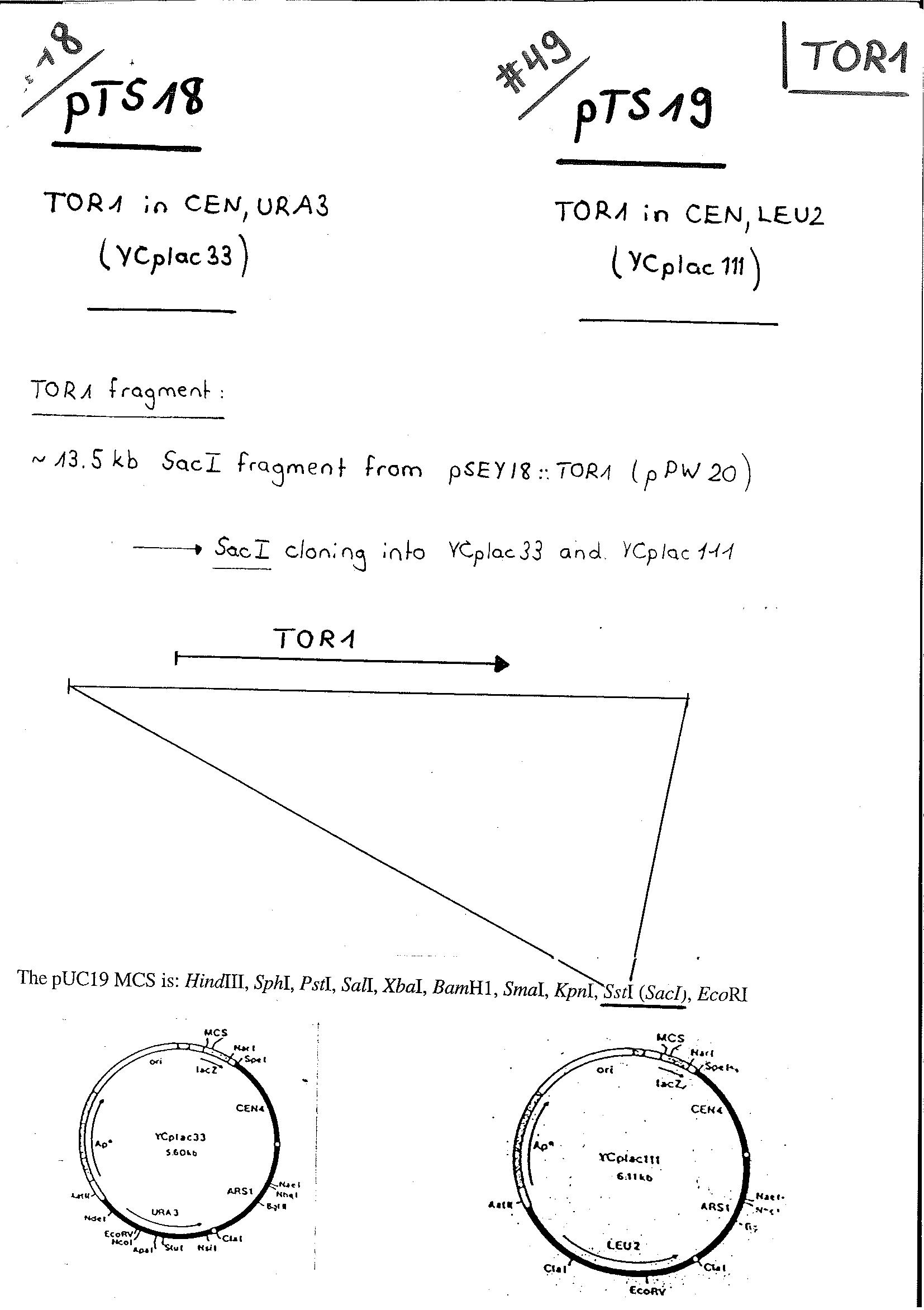 YCplac111::TOR1 (pTS19)