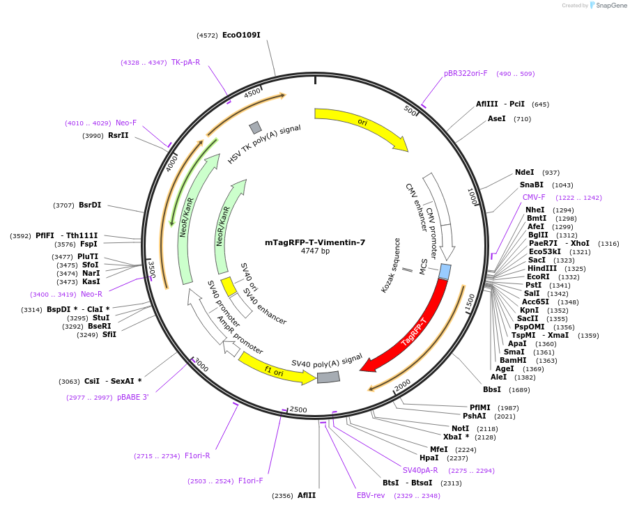 mTagRFP-T-Vimentin-7 was a gift from Michael Davidson (Addgene plasmid # 58029) -