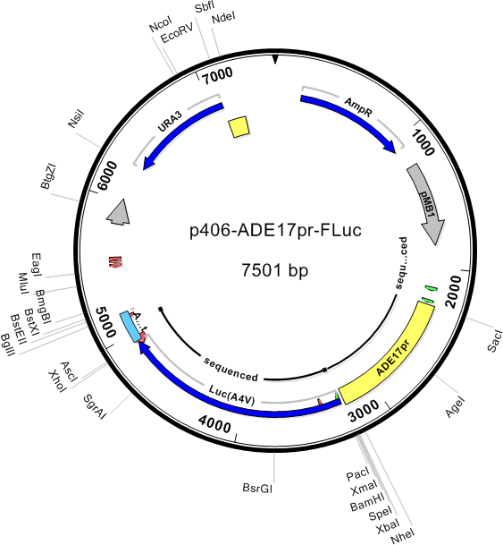 PurposeFirefly luciferase (Promega) driven by ADE17 promoter.