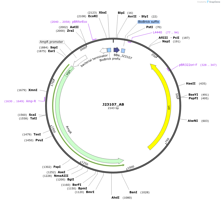 J23107_AB was a gift from Douglas Densmore (Addgene plasmid # 65996 ; http://n2t.net/addgene:65996 ; RRID:Addgene_65996) -