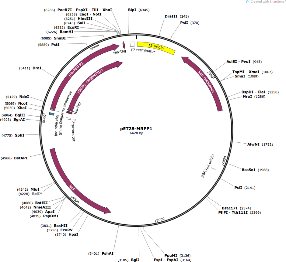 pET28-MRPP1 was a gift from Walter Rossmanith (Addgene plasmid # 67862 ; http://n2t.net/addgene:67862 ; RRID:Addgene_67862) -