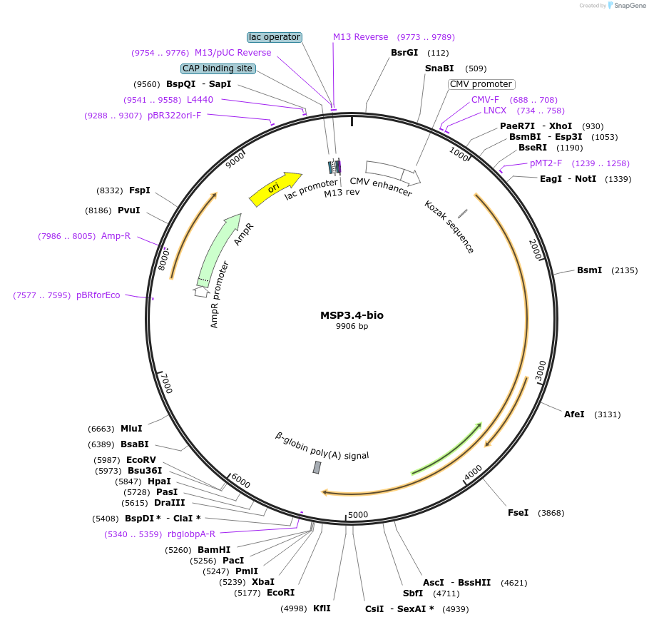 MSP3.4-bio was a gift from Julian Rayner & Gavin Wright (Addgene plasmid # 68508 ; http://n2t.net/addgene:68508 ; RRID:Addgene_68508) -