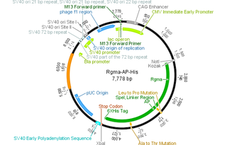PurposeExpresses the extracellular region of the RGMa protein, C-terminally fused to alkaline phosphatase + 6X histidine tag.