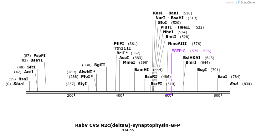 RabV CVS N2c(deltaG)-synaptophysin-GFP Sequences (3)