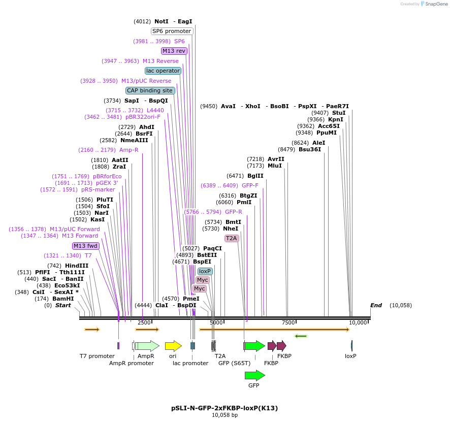 pSLI-N-GFP-2xFKBP-loxP(K13) Sequences (2)