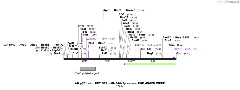 AB.pCCL.sin.cPPT.GFP.miR-340-3p.sensor.PGK.dNGFR.WPRE Sequences (2)