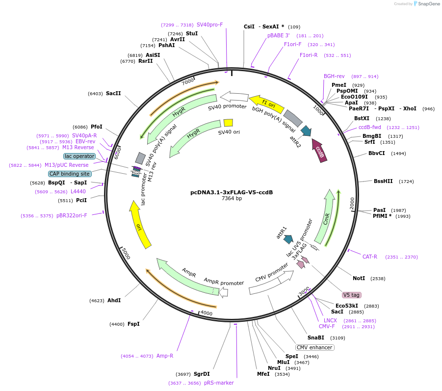 pcDNA3.1-3xFLAG-V5-ccdB was a gift from Susan Lindquist & Mikko Taipale (Addgene plasmid # 87064 ; http://n2t.net/addgene:87064 ; RRID:Addgene_87064) -