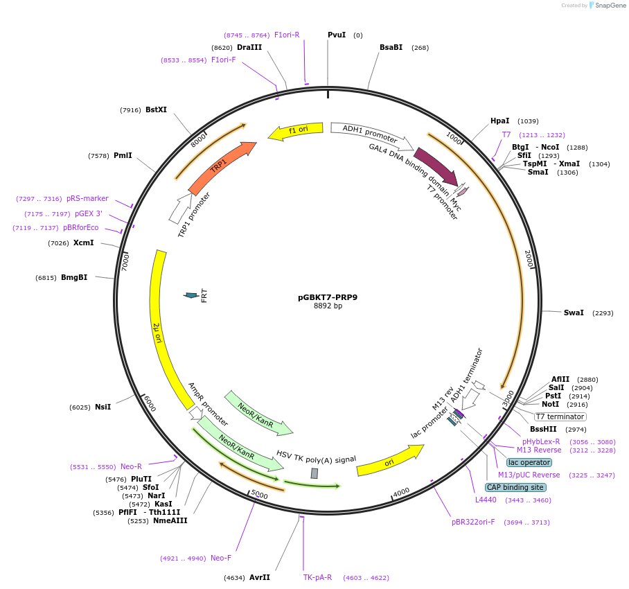 pGBKT7-PRP9 was a gift from Aaron Hoskins (Addgene plasmid # 87593 ; http://n2t.net/addgene:87593 ; RRID:Addgene_87593) -
