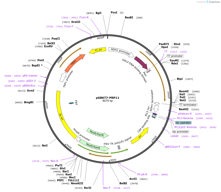 pGBKT7-PRP11 was a gift from Aaron Hoskins (Addgene plasmid # 87594 ; http://n2t.net/addgene:87594 ; RRID:Addgene_87594) -