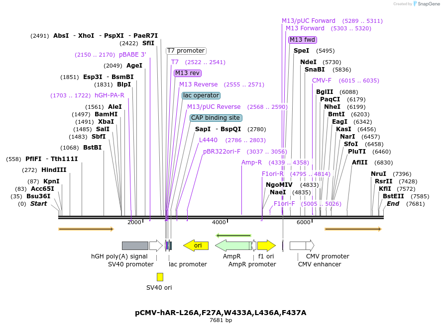 pCMV-hAR-L26A,F27A,W433A,L436A,F437A Sequences (1)