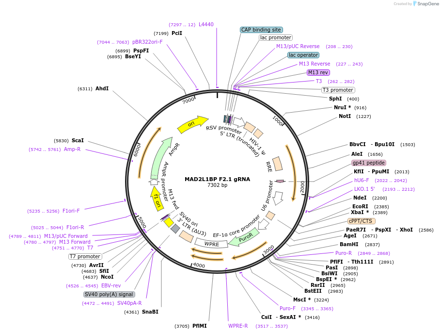 Purpose3rd generation lentiviral gRNA plasmid targeting human MAD2L1BP