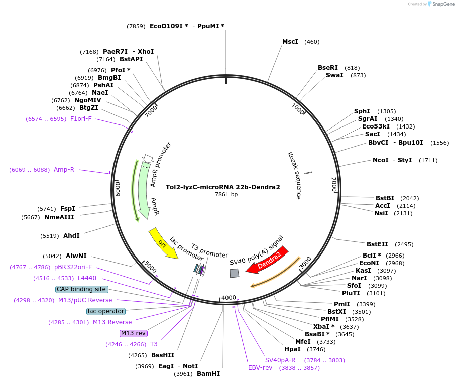 Tol2-lyzC-microRNA 22b-Dendra2 was a gift from Qing Deng (Addgene plasmid # 97105 ; http://n2t.net/addgene:97105 ; RRID:Addgene_97105) -