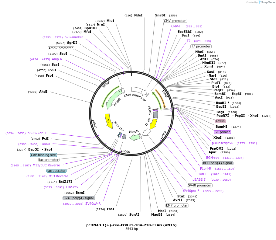 pcDNA3.1(+)-zeo-FOXK1-104-278-FLAG (#916)