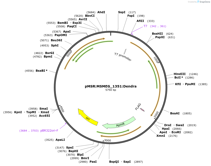 UseIntegrating mycobacterial expression vector attl5…TagsGly-Ala Linker/Dendra2/1x Flag TagExpressionBacterialPromoterpmycTetOAvailable SinceOct. 28, 2021AvailabilityAcademic Institutions and Nonprofits only